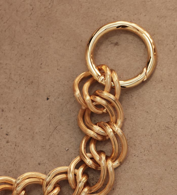 • Mousquetons en laiton doré, fabriqués en Italie