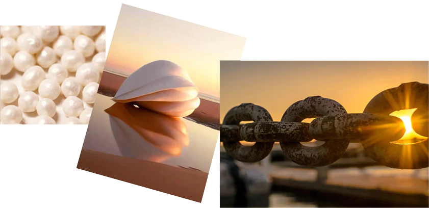 • Perles rondes en nacre upcyclées, récupérées d’un stock, dormant depuis plus de 25 ans à Paris