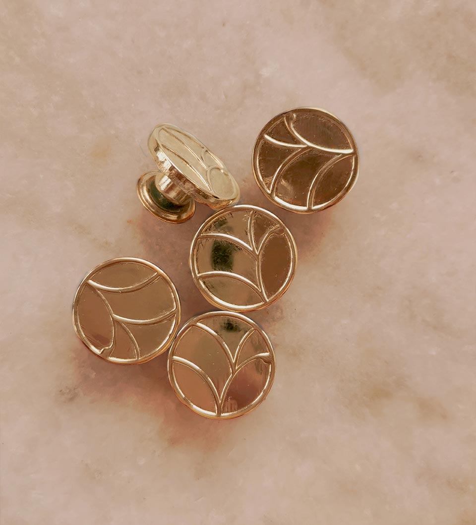 • Bouton bijou gravé en laiton et zamak réalisé en Italie