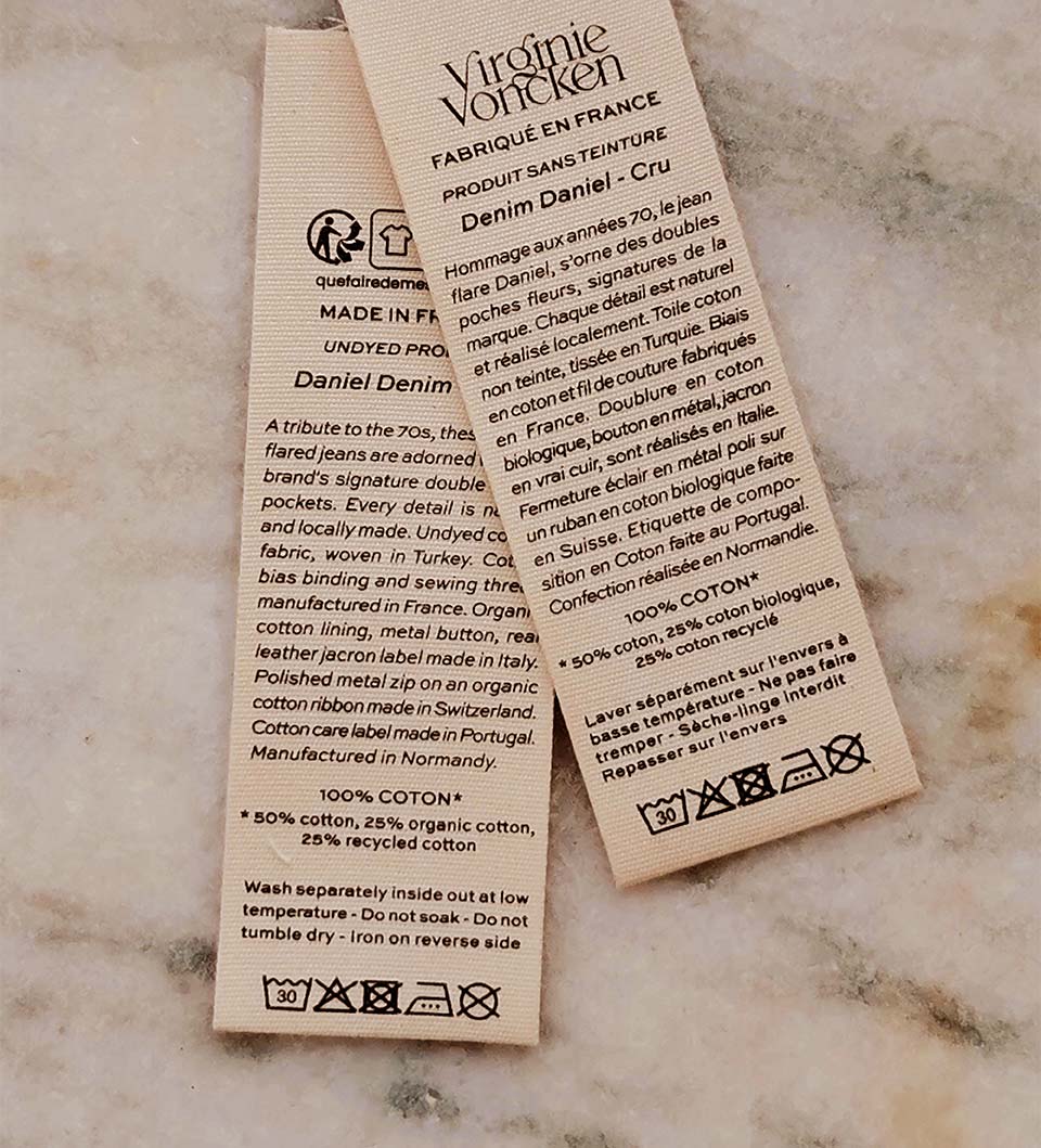 • Étiquette de composition en coton non teint, réalisée au Portugal