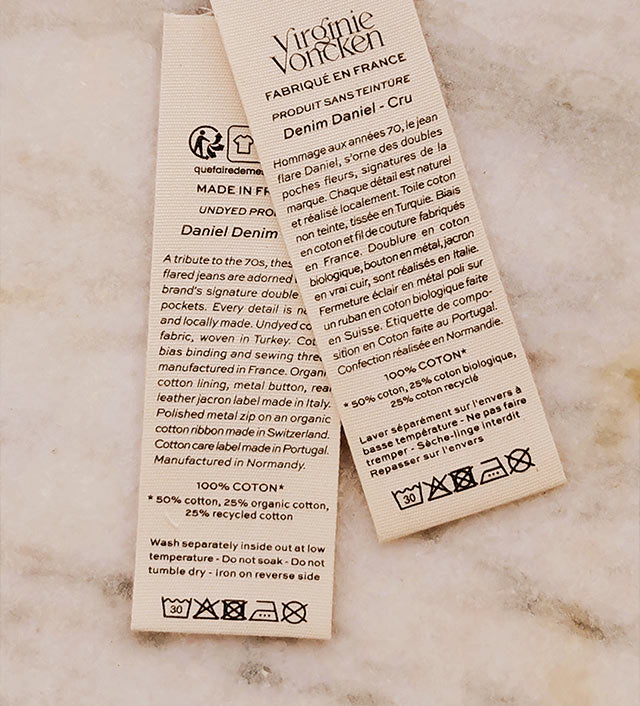 • Étiquette de composition en coton non teint, réalisée au Portugal